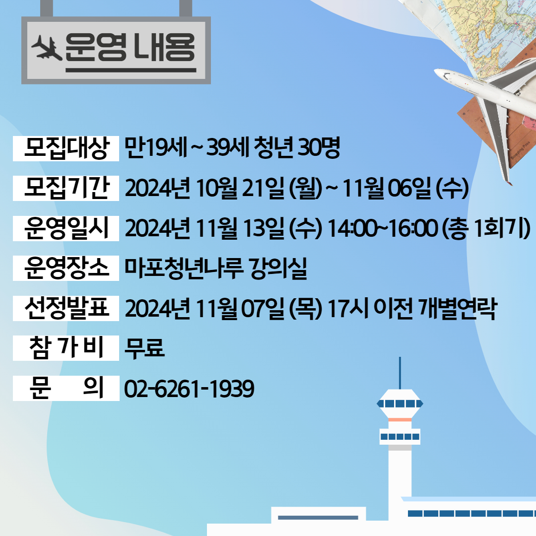 #마포청년나루 #청년공간 #취창업프로그램 #무료취창업프로그램 #취업특강 #항공사취업 #면접특강
