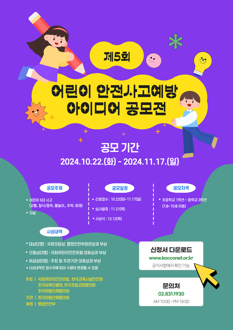 ○ 대 회 명 : 2024년 제5회 어린이 안전사고 예방 아이디어 공모전
