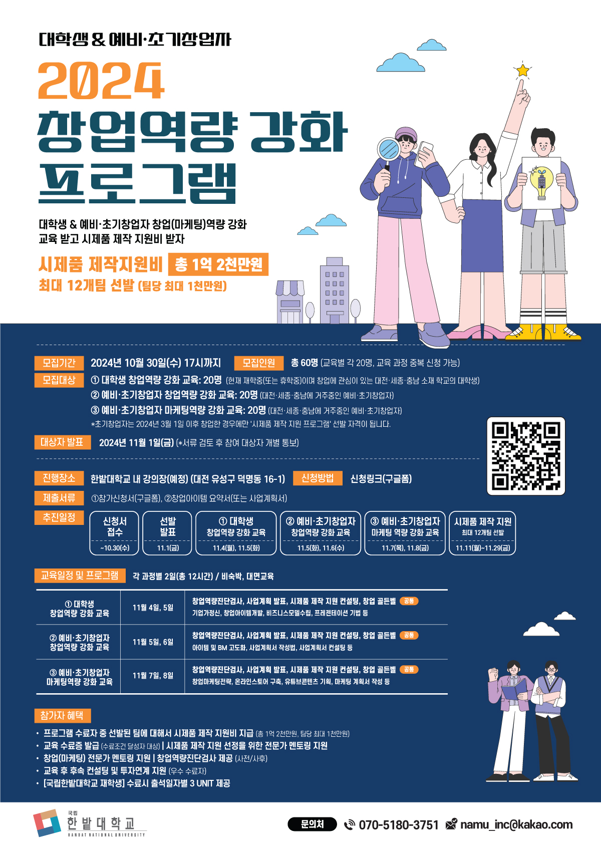 ■ 모집대상: ①대학생 창업역량 강화 교육: 20명[현재 재학중(또는 휴학중)이며 창업에 관심있는 대전 세종 충남 소재 학교의 대학생(대학원생)]