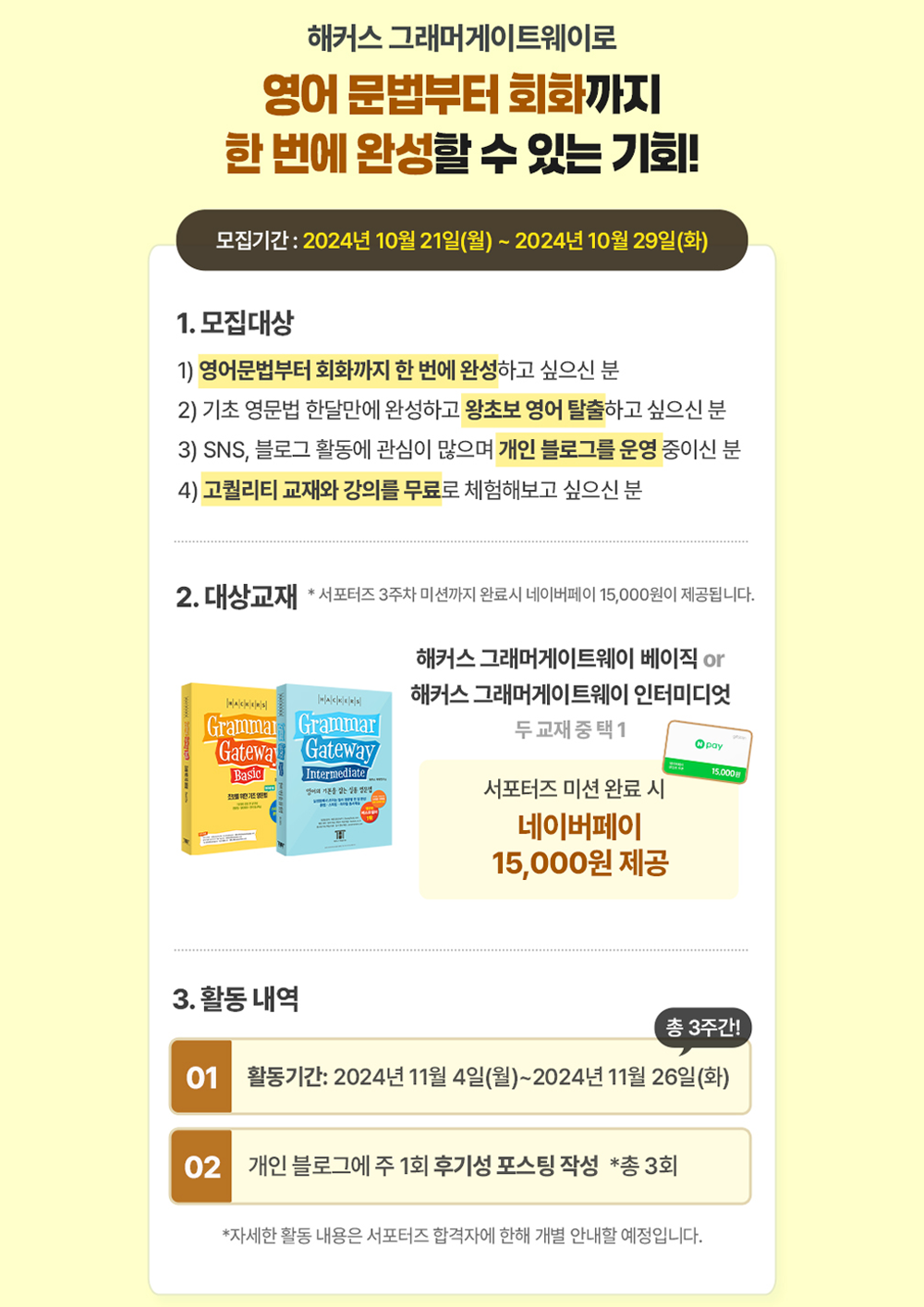 - 활동 우수자 선정 시 네이버페이 15,000원 추가 증정