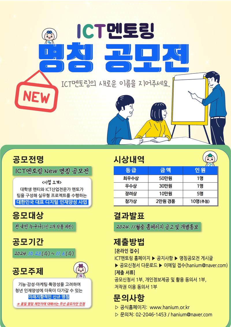 - ICT멘토링 홈페이지 -> 공지시항 -> New 명칭 공모전 게시글