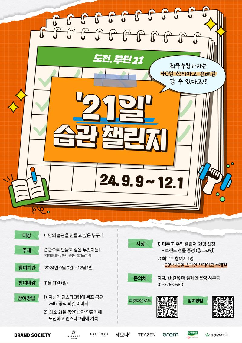 *필수 해시태그 포함 (#지금한걸음더 #캠페인 #도전루틴21 #산티아고40일)