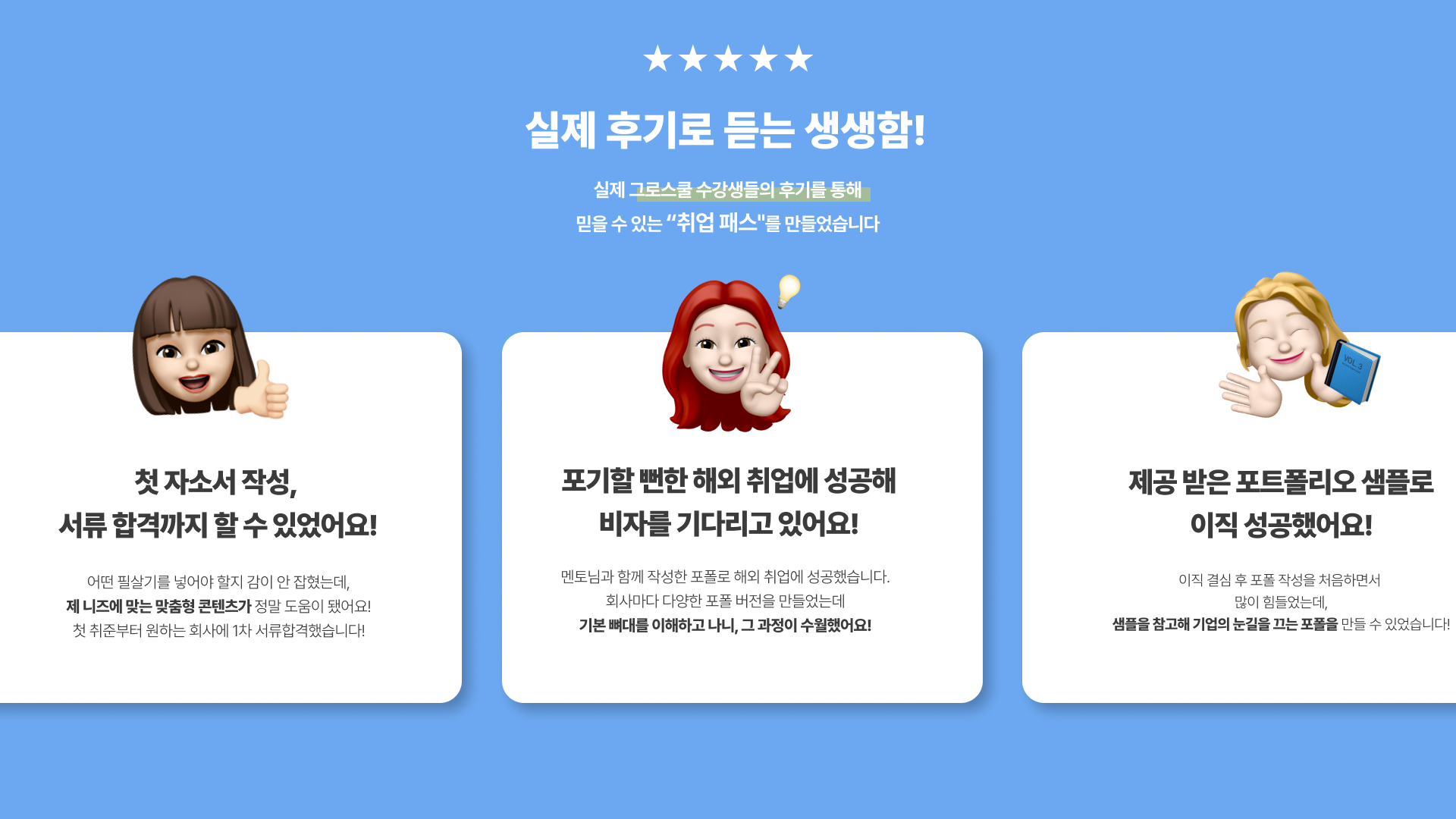 - 실제 검증된 합격 사례를 바로 참고해 서류를 제작할 수 있습니다.