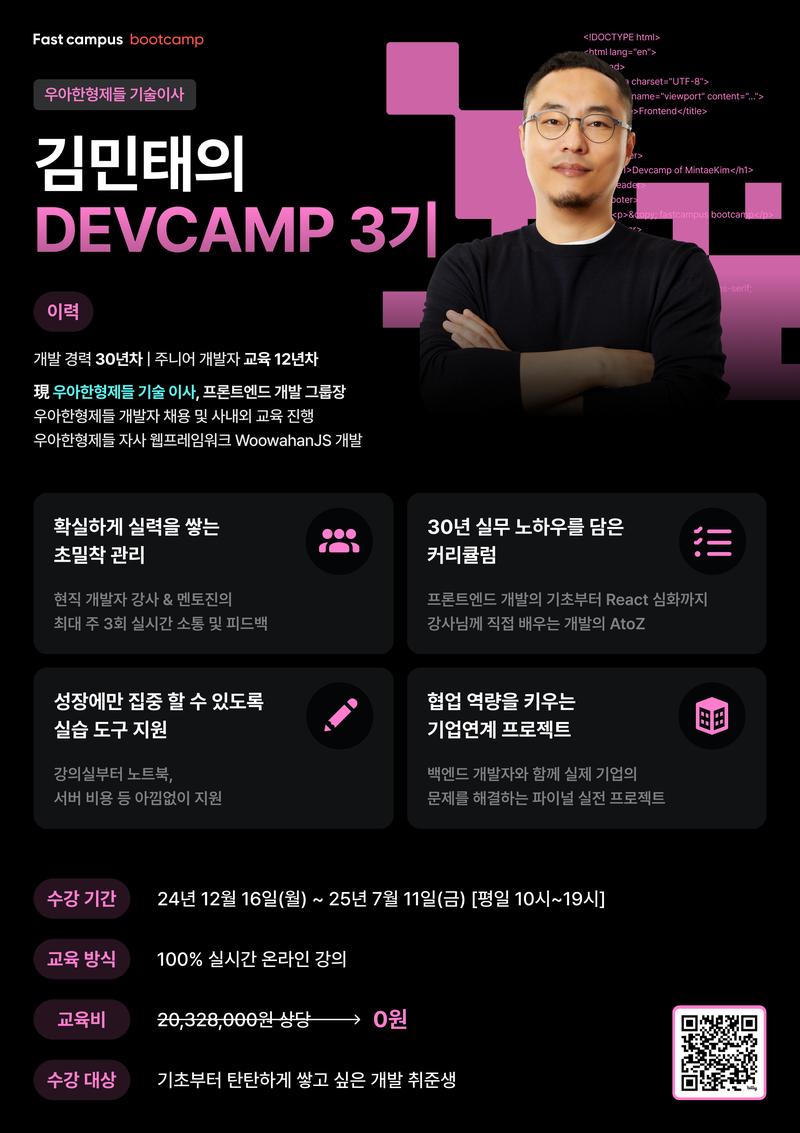프론트엔드 개발 부트캠프 <김민태의 데브캠프> 3기 오픈❗