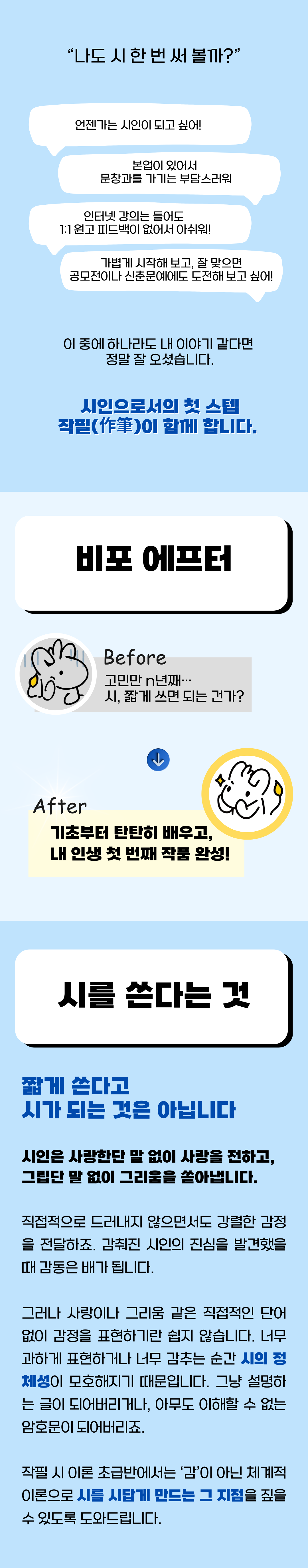 두 프로젝트의 수강 순서는 무관하며, 하나만 참여하셔도 시 쓰기에 큰 도움을 받으실 수 있습니다.