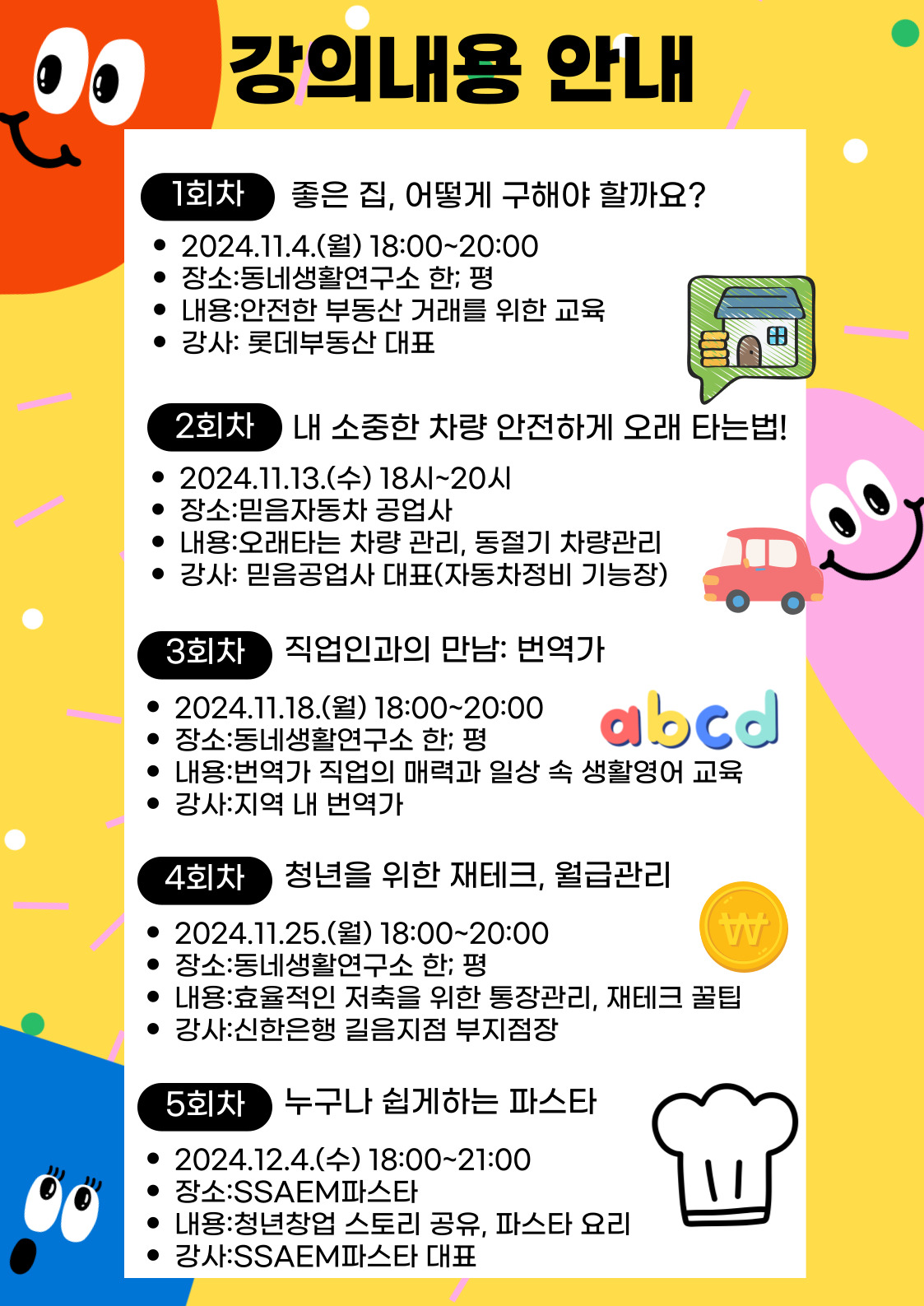 일정: 2024.11.4.(월)~12.4(수)/총5회기(주1회)