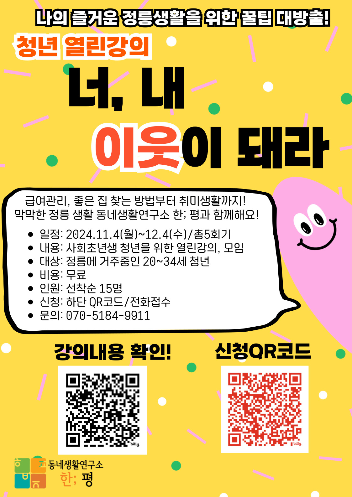 📌청년열린강의 "내 이웃이 돼라!" 참여자 모집📌