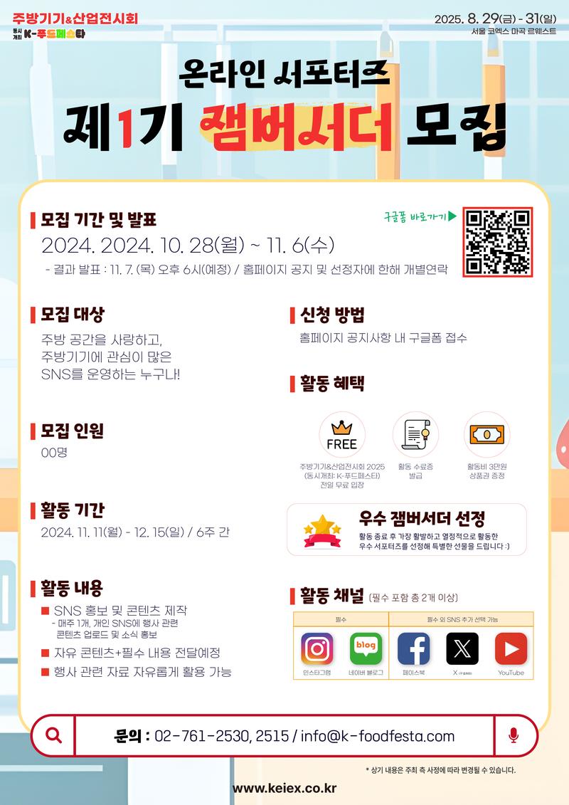 '주방기기&산업전시회 2025(동시개최: K-푸드페스타)' 서포터즈, 🍳잼버서더🍳를 모집합니다!