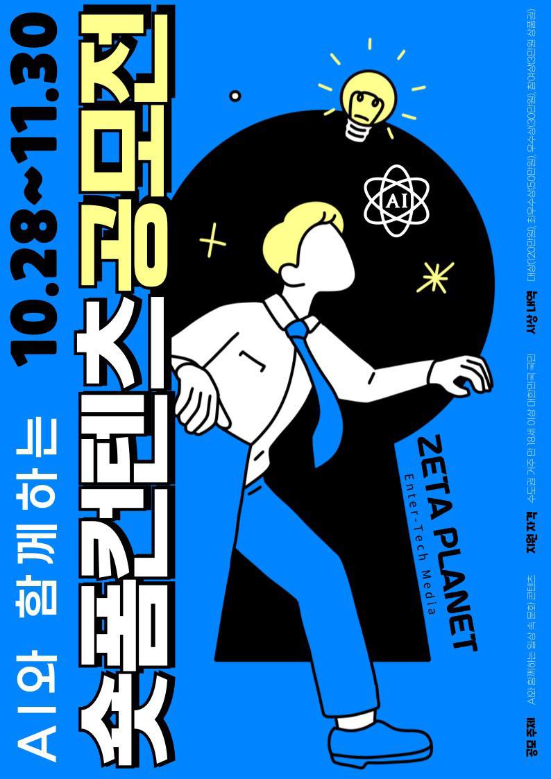 "Zeta Planet" AI와 함께 하는 문화 생활 숏폼 스토리(시놉시스) 공모전 Zeta Planet은 AI 기반의 문화 콘텐츠 기획 전문 회사로, 다양한 산업 분야의 고객들에게 혁신적이고 창의적인 콘텐츠 솔루션을 제공합니다. 우리는 고객의 요구를 분석하고, 최신 AI 기술을 활용하여 독창적인 아이디어를 현실로 만들어갑니다. 우리의 목표는 문화 콘텐츠를 통해 사람들을 연결하고, 새로운 경험을 창출하여 모두가 함께 즐길 수 있는 세상을 만드는 것입니다.