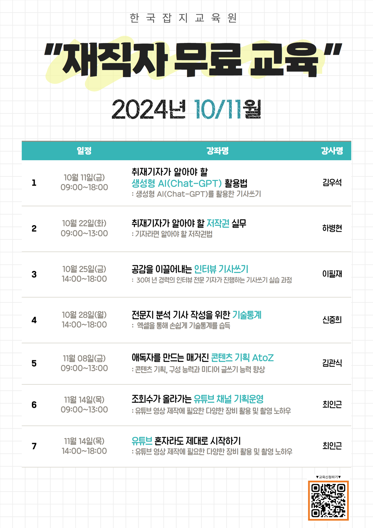 * 교육신청페이지 ( https://www.magazineschool.co.kr/ )