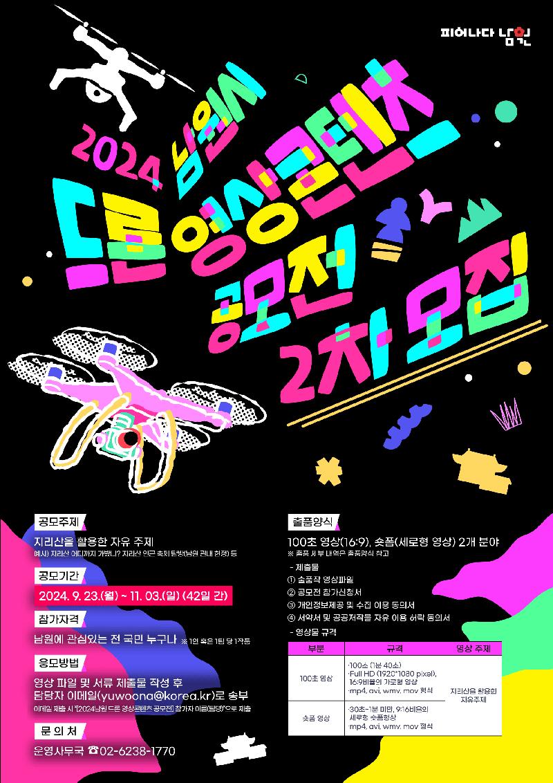 - 남원시 드론 영상콘텐츠 공모전 운영사무국 (☎ 070-5165-7522)