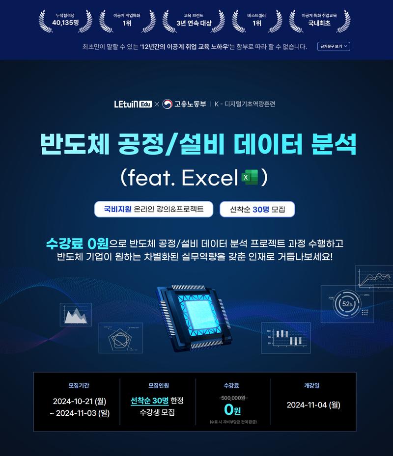 이공계 전문 기업 렛유인에서 진행하는 "국비교육"으로 수강료 전액 무료입니다.
