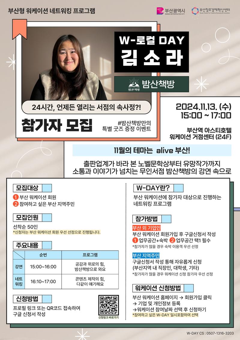 이번 W-로컬 DAY는 부산 광안리 최초 무인 서점 '밤산책방'의 김소라 대표님을 소개합니다!📚