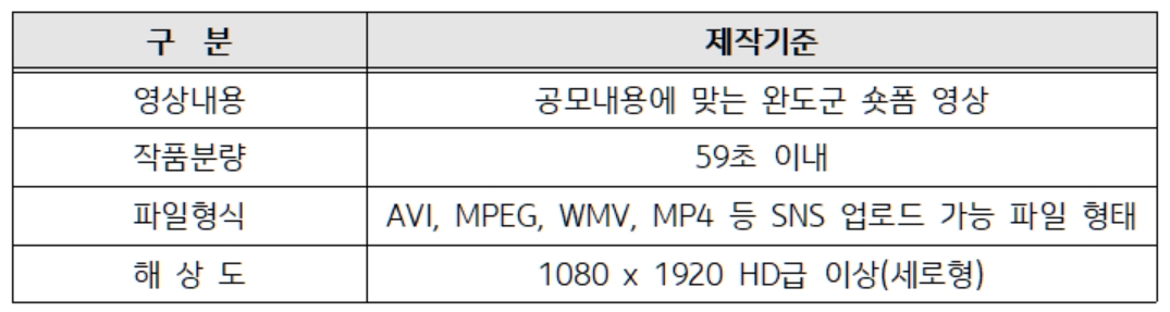 1. 공모명 : 완도군 공식 유튜브 숏폼 영상 공모전
