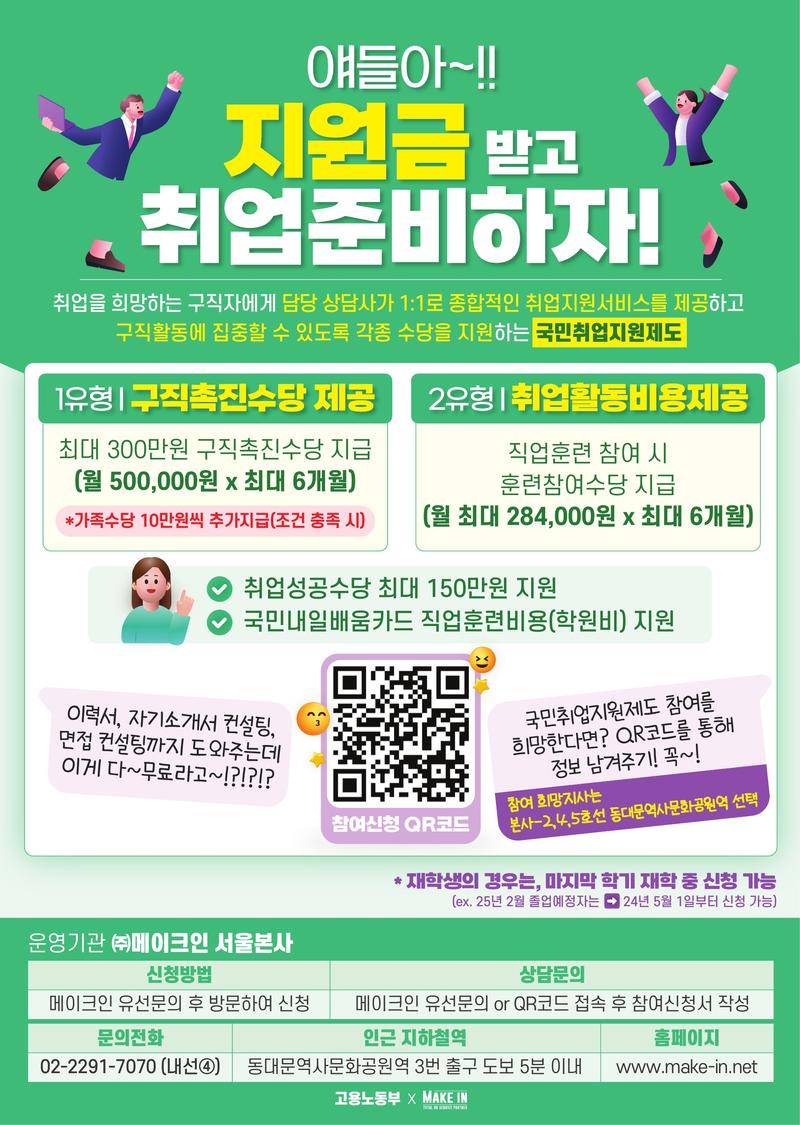 [고용노동부 X Make In(메이크인)] "국민취업지원제도" 참여자 모집 - 지원금 받으면서 취업 성공하자!