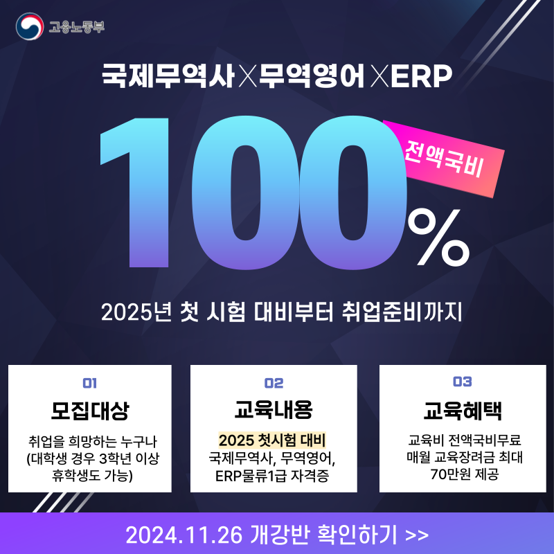 [고용노동부] 2025년 3월 물류/무역/유통 취업반(국제무역사&무역영어&물류 자격증 첫시험 대비)