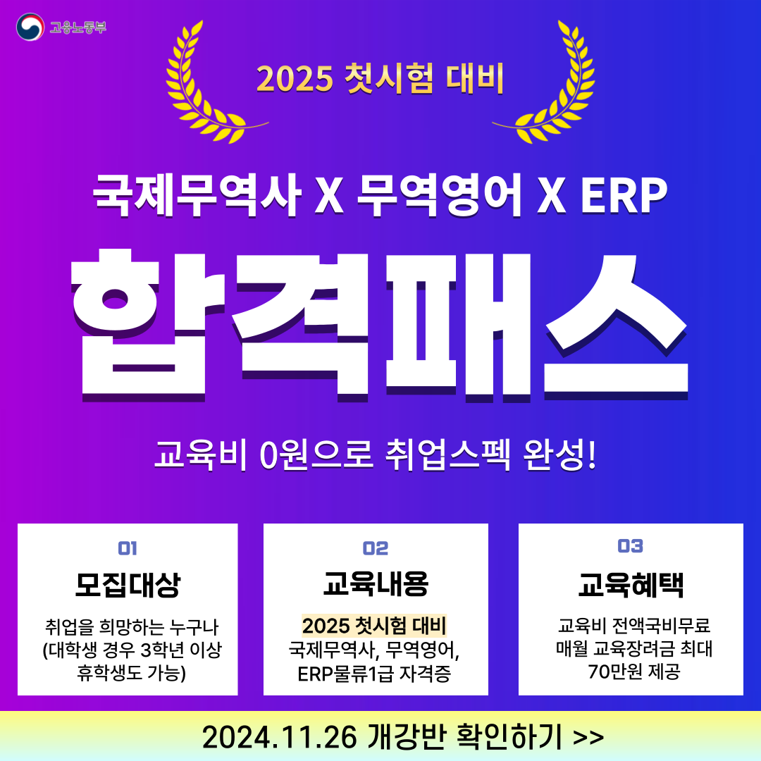 ▶2025 첫시험 대비반◀ 물류/무역 자격증&취업교육(국제무역사/무역영어/물류)