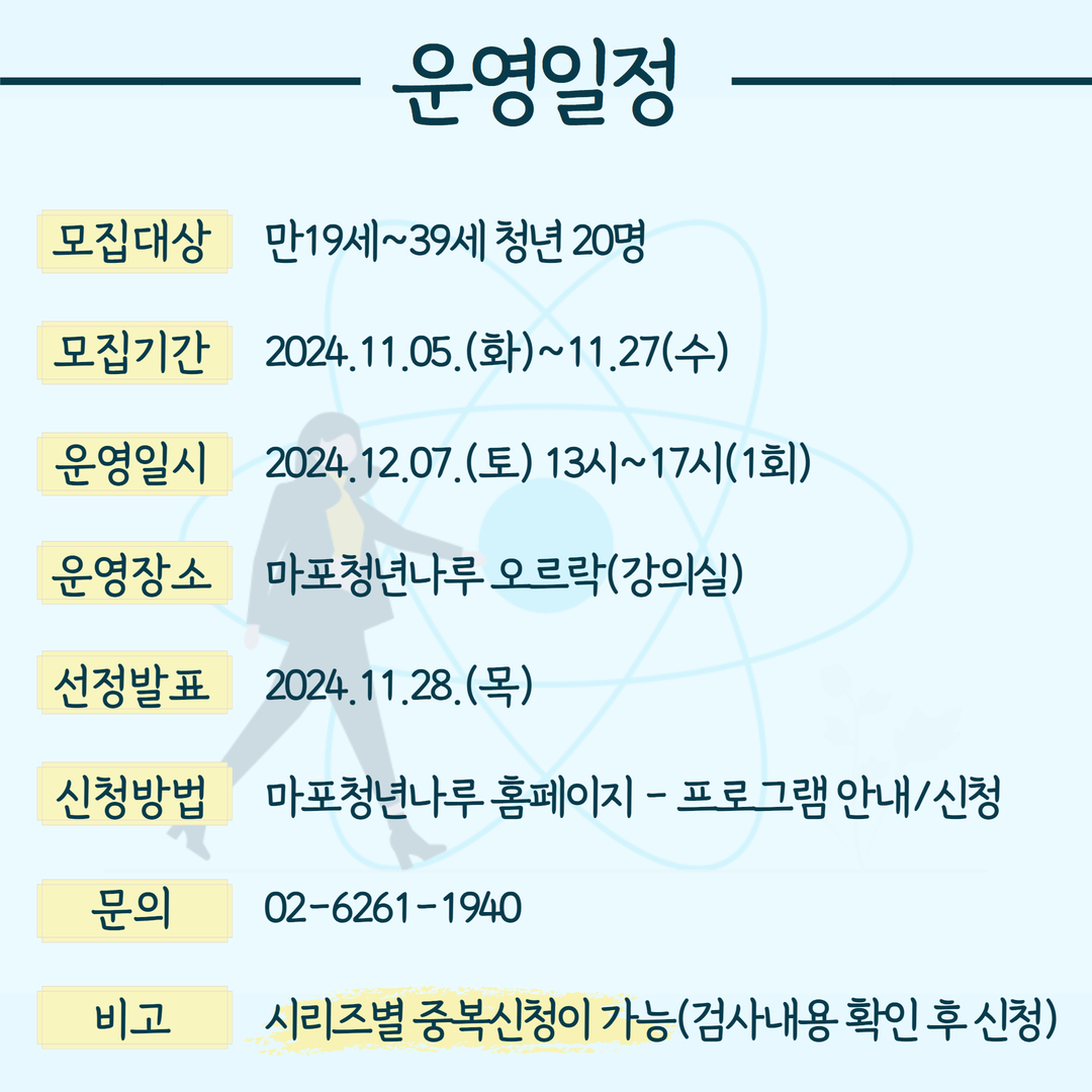 ◎ 신청방법: 마포청년나루 홈페이지 – 프로그램 안내/신청