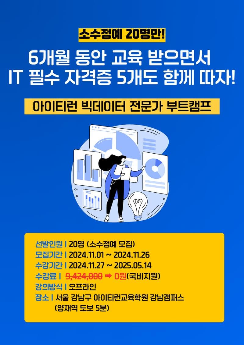 아이티런과 함께 데이터 전문인재로 취업 성공할 소수정예 20명을 기다립니다!