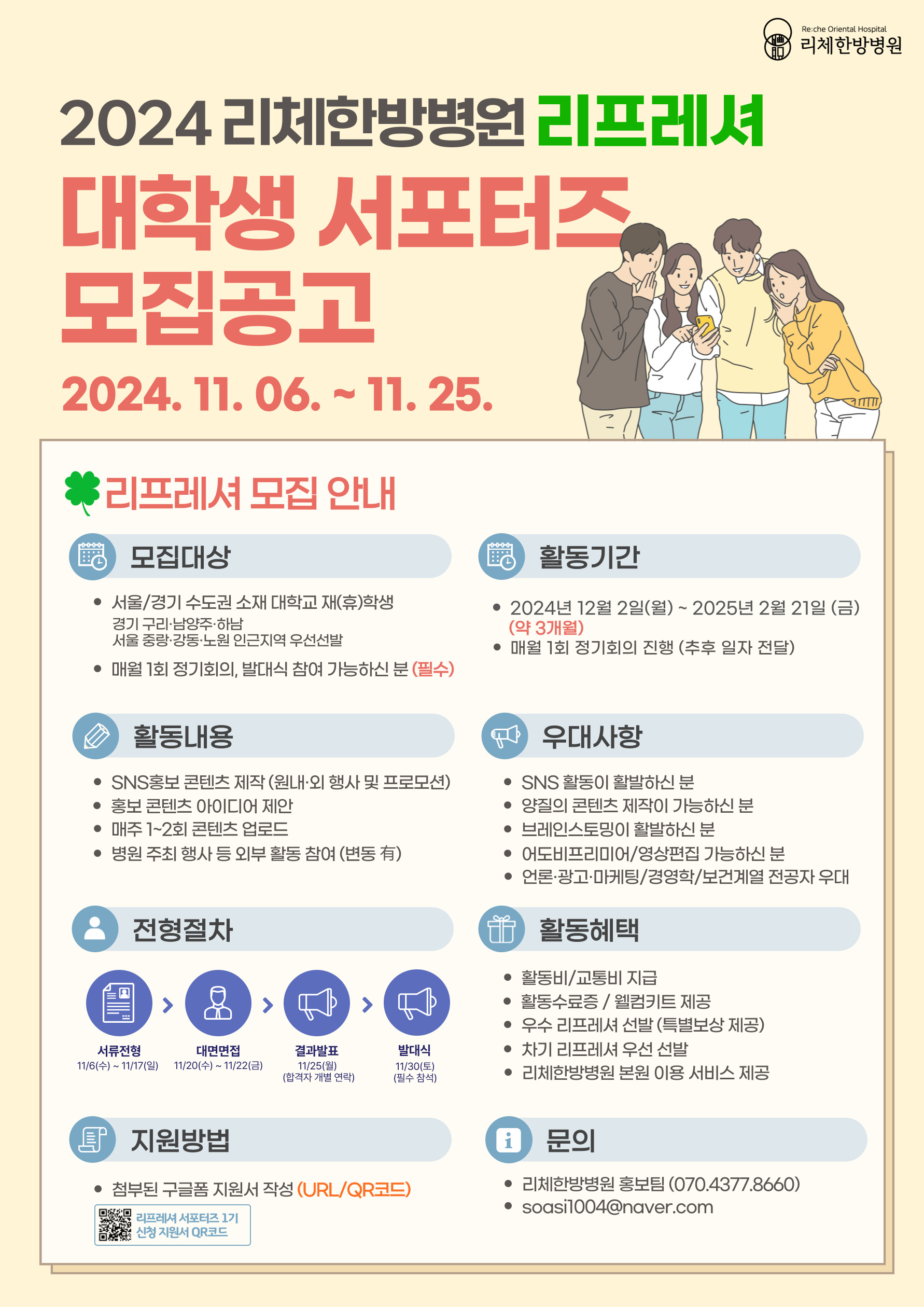 리프레셔(RE:FRESHER)는 리체한방병원의 서포터즈로서