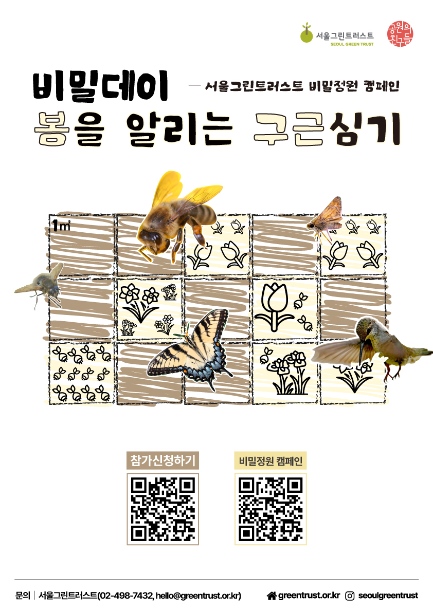 🌱대상: 시민 누구나, 회차별 🌱비밀데이 참가 후원금: 1인당, 3만원 - 후원금은 식재 봉사활동을 위한 식물 구입과 인솔 강사, 봉사활동 준비 운영을 위해 사용됩니다. - 식물심기에 직접 참여하지 못하는 후원자를 위해 서울그린트러스트 공원의친구들이 식물을 대신 심어드려요.