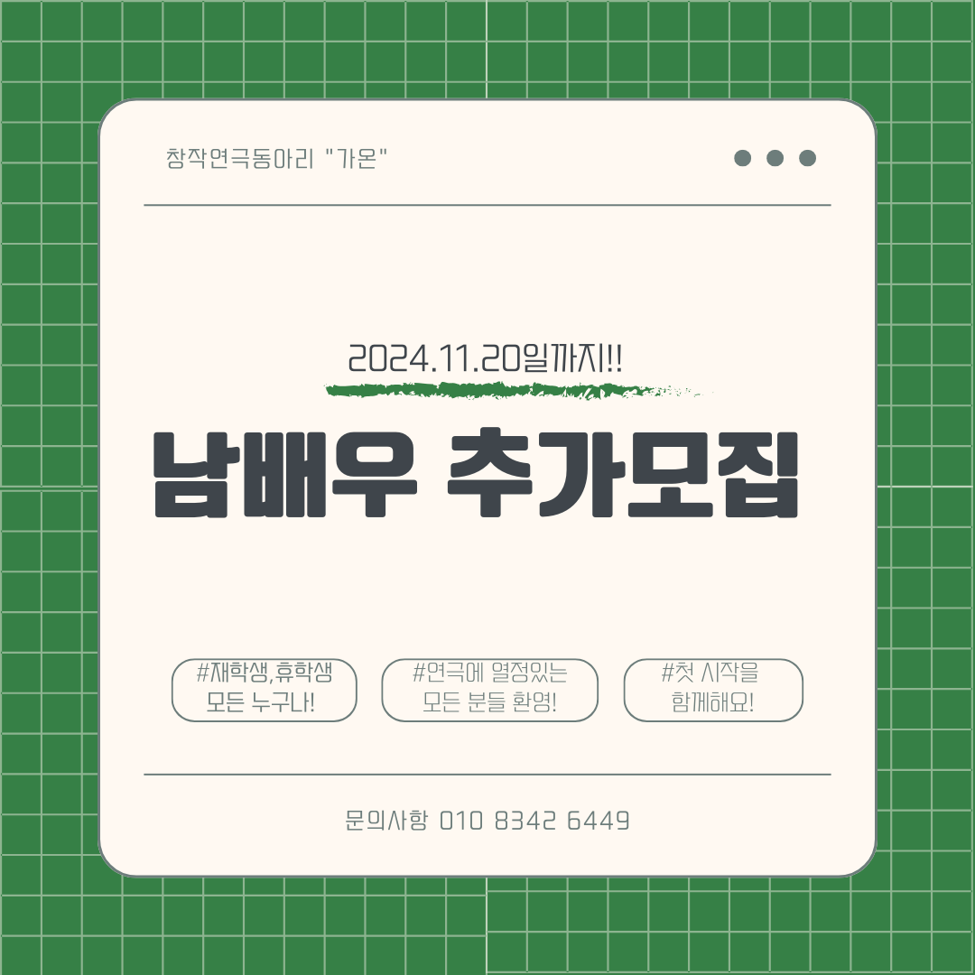 🪶창작연극 동아리 가온에서 사극 연극인 {다시 만난 너에게}를 함께 할 대학생 남배우를 모집합니다.🪶