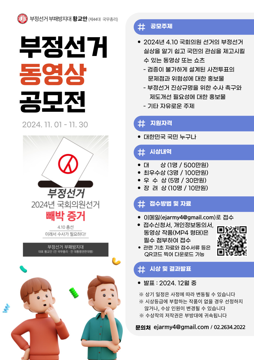 국회의원 선거 관련 동영상(쇼츠 포함) 공모전을 실시합니다.