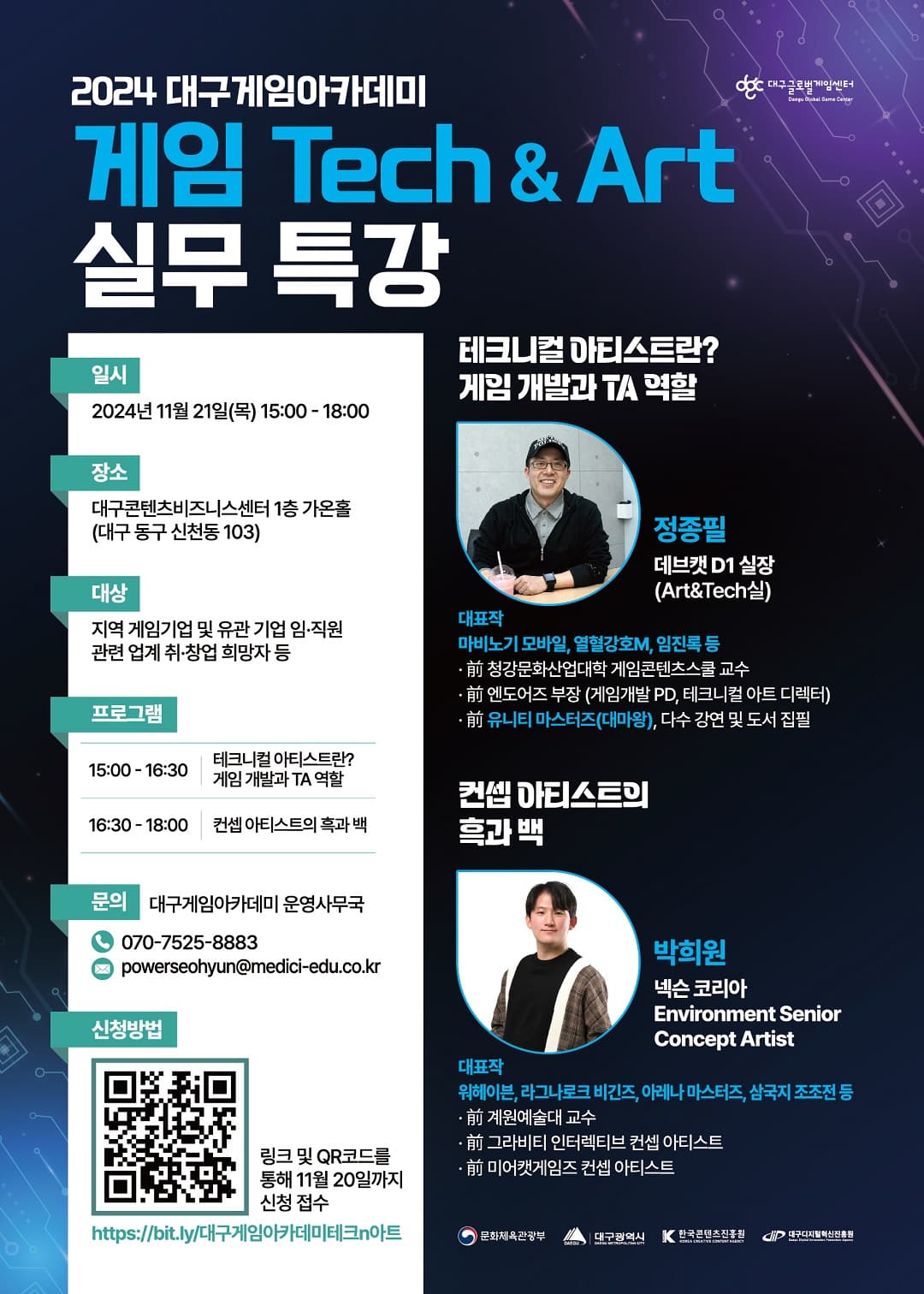 - 장소 : 대구컨텐츠비즈니스센터 1층 가온홀 (대구 동구 신천동 103)