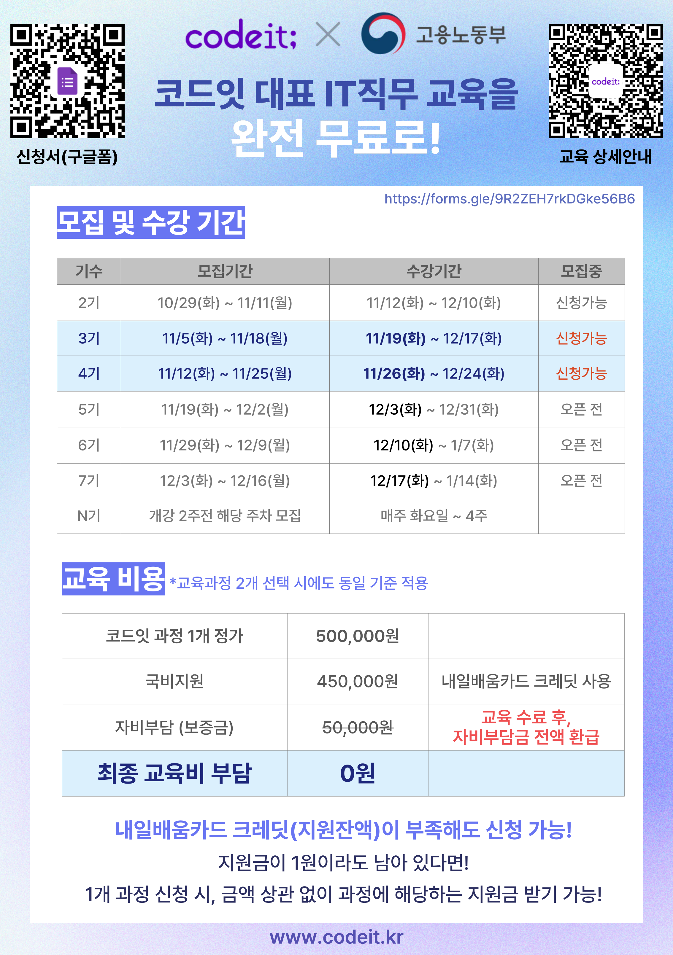 - 신청대상: 내일배움카드 소유자 & 발급 가능자 누구나