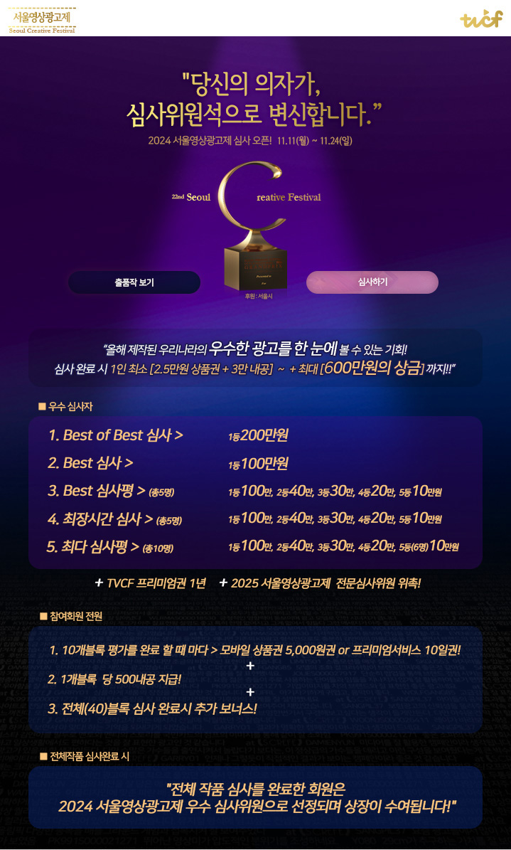 대한민국 최고의 CF를 가려내는 서울영상광고제 온라인 심사에 참여하면,