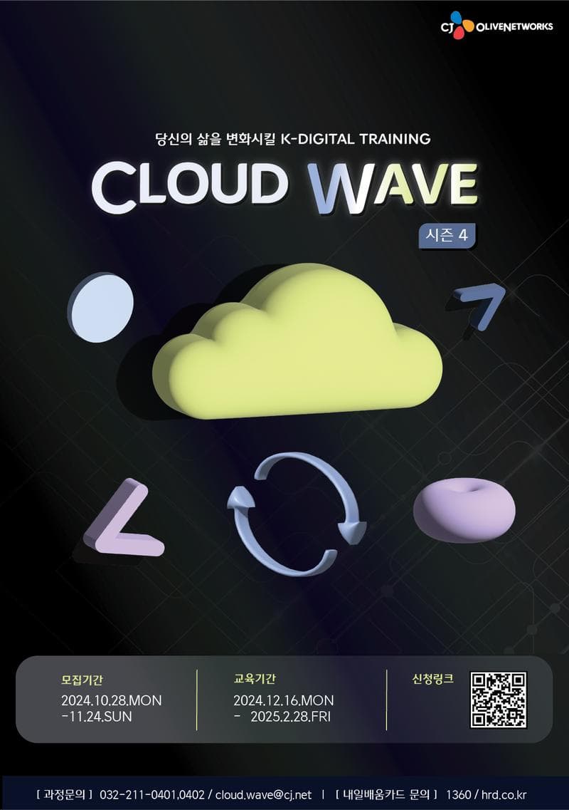 - [CJ 올리브네트웍스] 클라우드 웨이브(CLOUD WAVE) 시즌 4 – 국비지원무료과정