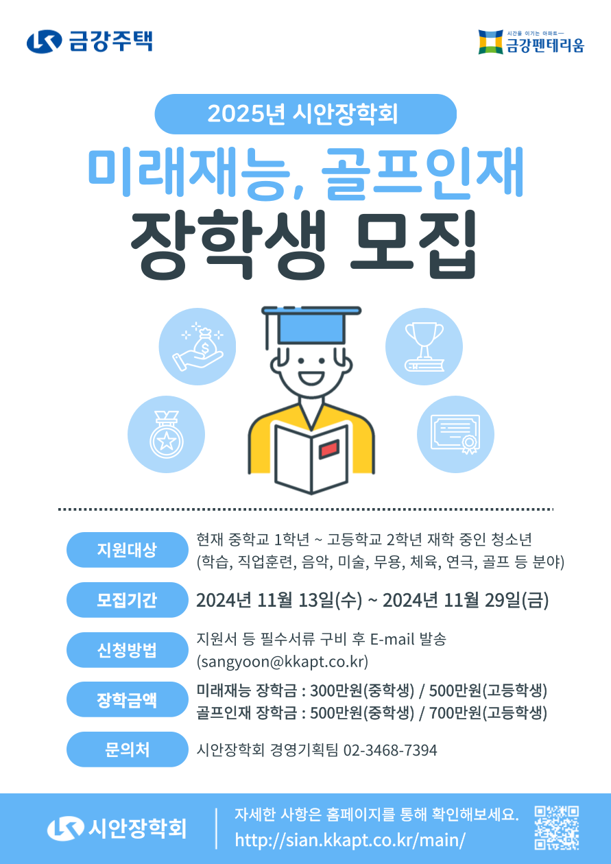 (장학지원서 및 부속서류는 홈페이지 http://sian.kkapt.co.kr/main/ 공지사항 첨부양식)