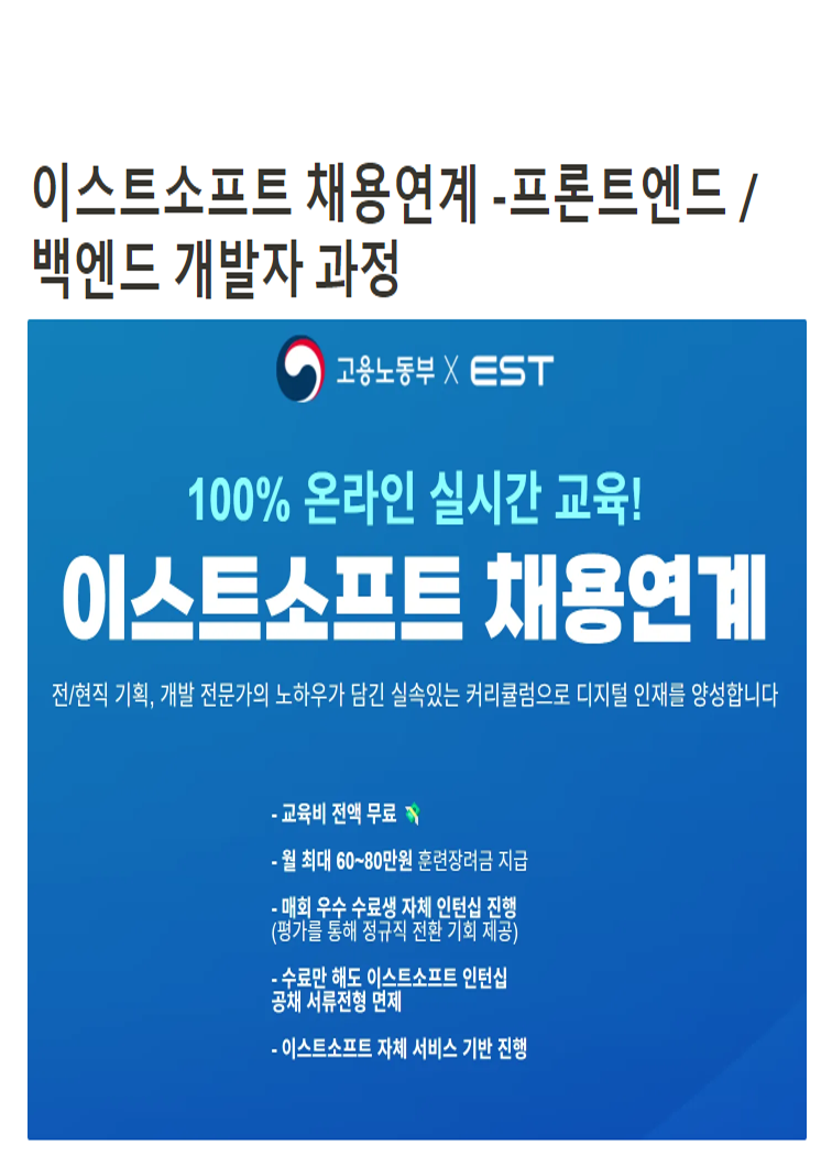 [이스트소프트] 채용연계형 프론트엔드 백엔드 부트캠프 국비지원