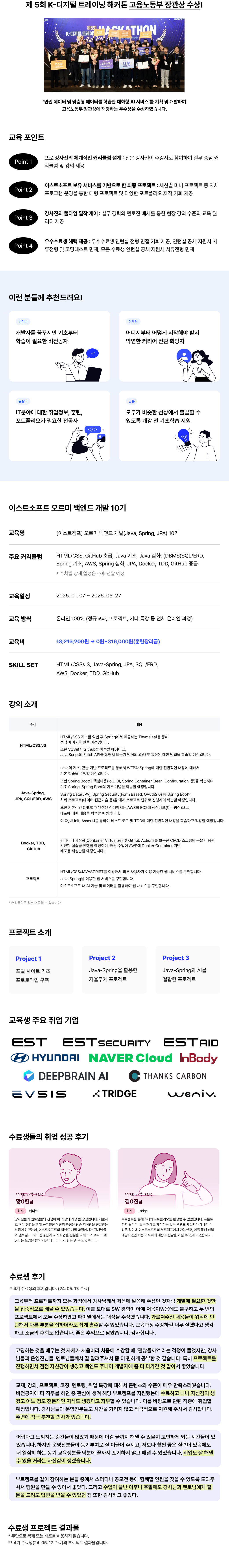 이스트소프트 10년 이상 경력의 강사진이 진행하는 실무 기반 교육과 실속 있는 커리큘럼으로 백엔드 개발자 커리어 시작하기!
