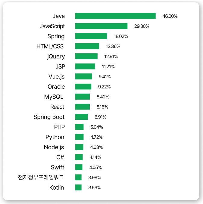 [ 국내 IT 기업에서 원하는 개발자 언어 순위 ]