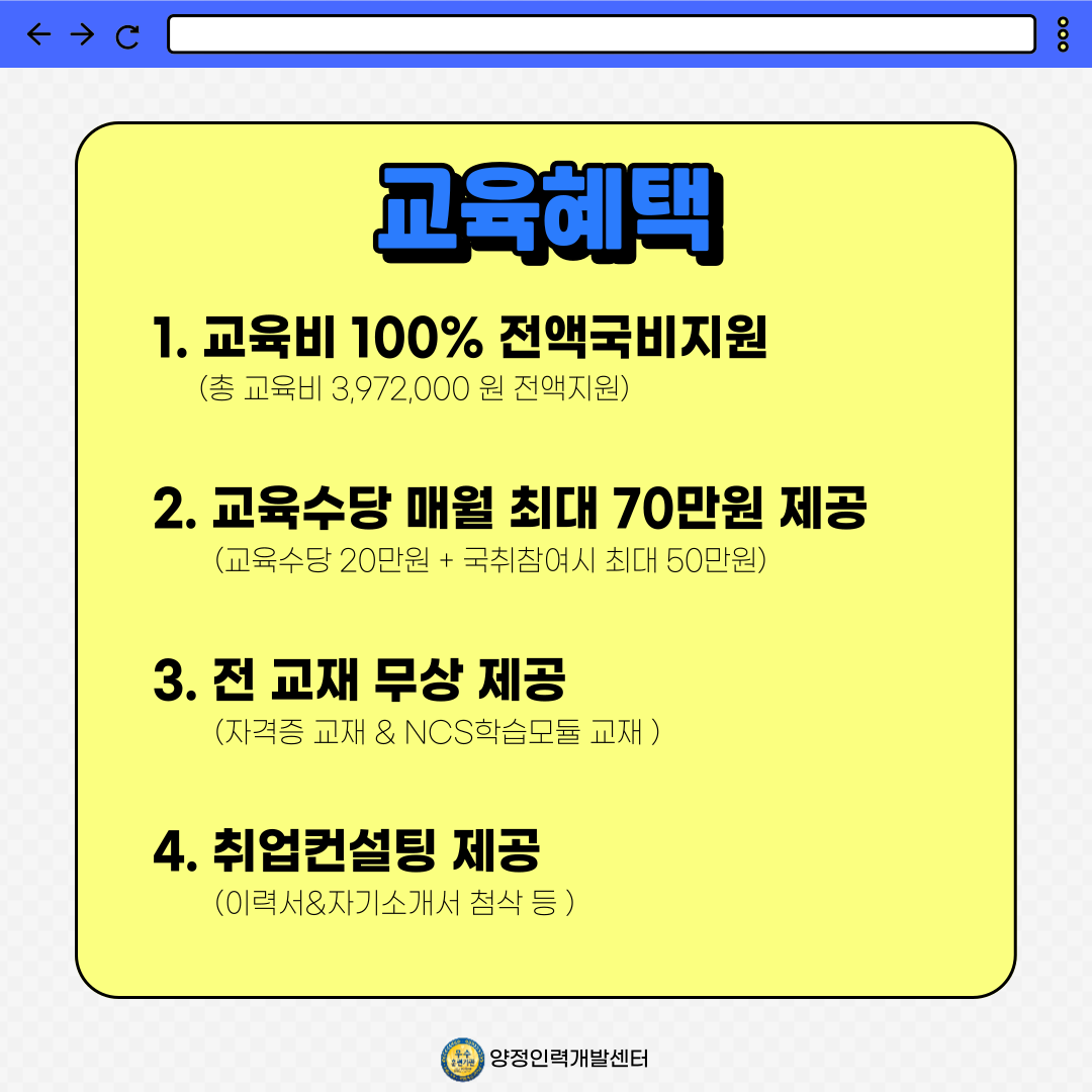 👍교육비: 100%전액 국비 지원