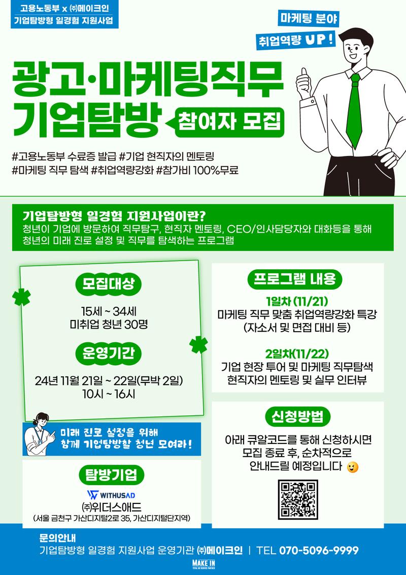 [(주)메이크인/고용노동부] 광고마케팅 직무 기업탐방형 프로그램 참여자 추가 모집
