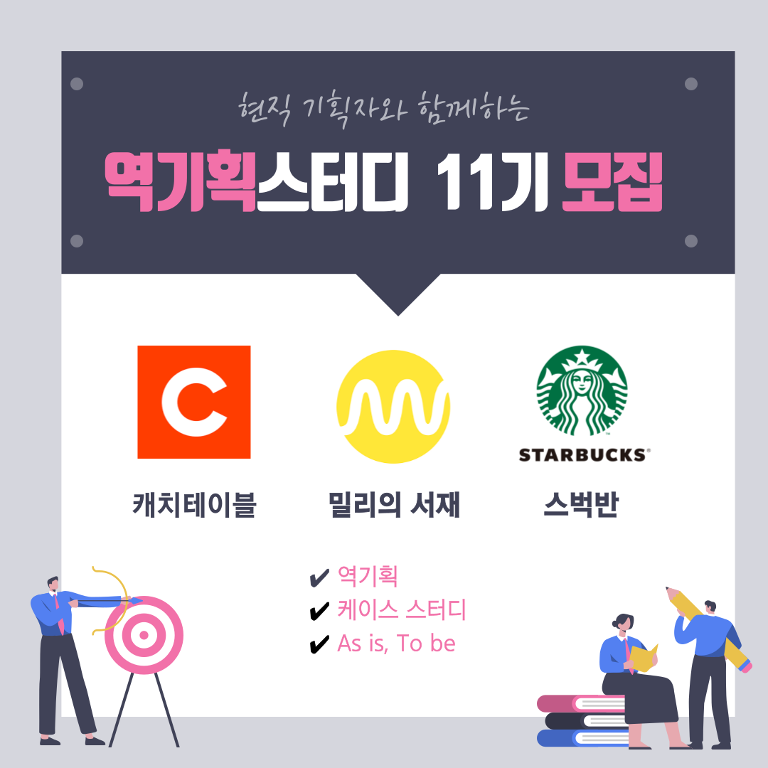 이번 스터디는 IT 기획자가 되어 유명 서비스를 역기획하는 실전형 학습입니다. 각 반에는 현직 기획자인 운영자와 함께 역기획 진행 방법부터 피드백까지 세세하게 지원해드립니다. 이 과정에서 역기획을 통해 서비스의 구조를 파악하고, 자신만의 포트폴리오를 만들 수 있습니다.