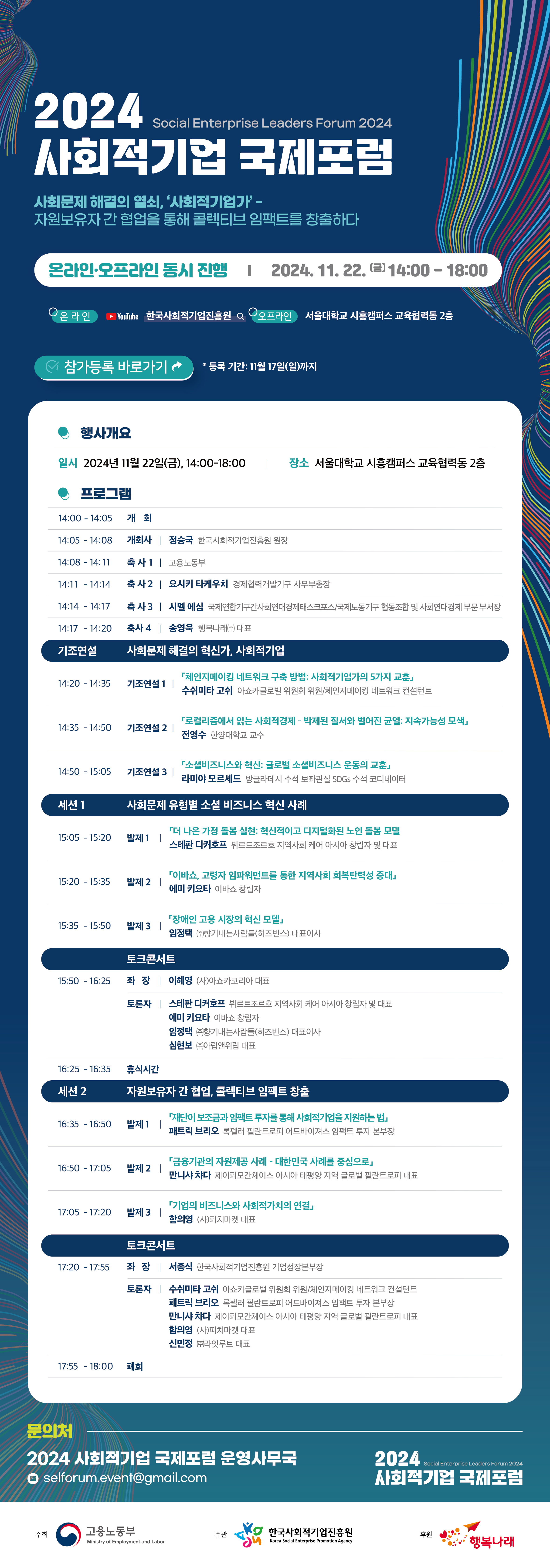 고용노동부가 주최하고 한국사회적기업진흥원이 주관하는 사회적기업 국제포럼은 2012년부터 매년 개최된 국제행사입니다.