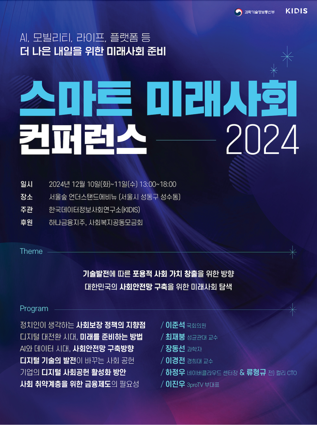 한국데이터정보사회연구소가 주관하는 스마트 미래사회 컨퍼런스에서 "사회 발전과 디지털 혁신으로"라는 주제로