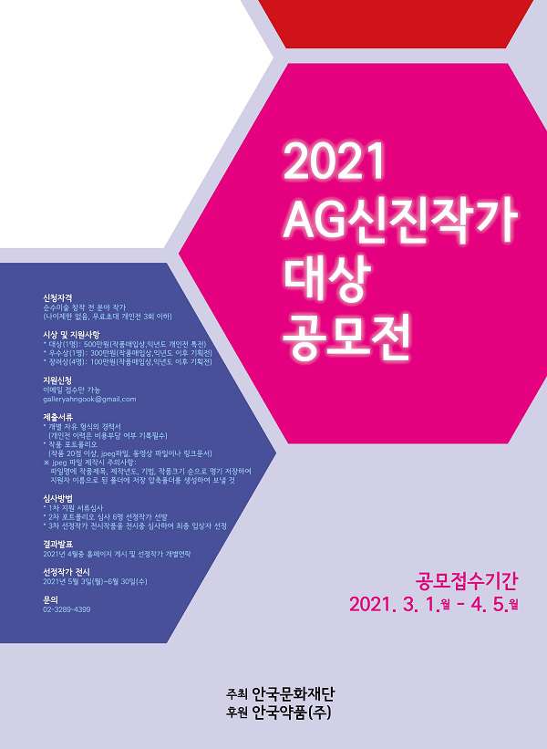 - 02)3289-4399안국문화재단 2021 AG신진작가대상 공모전
