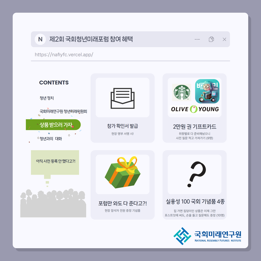 안녕하십니까, 국회미래연구원 청년미래위원회입니다.