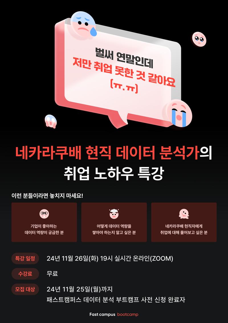 - 특강 일정 : 24년 11월 26(화) 19시 *선착순 마감으로 조기마감 될 수 있음