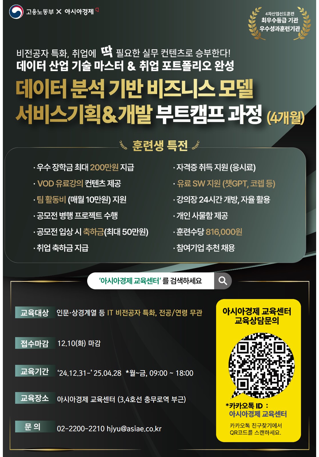 - 데이터 분석 기반 비즈니스 모델 서비스&개발 부트캠프 과정 (594시간 / 4개)
