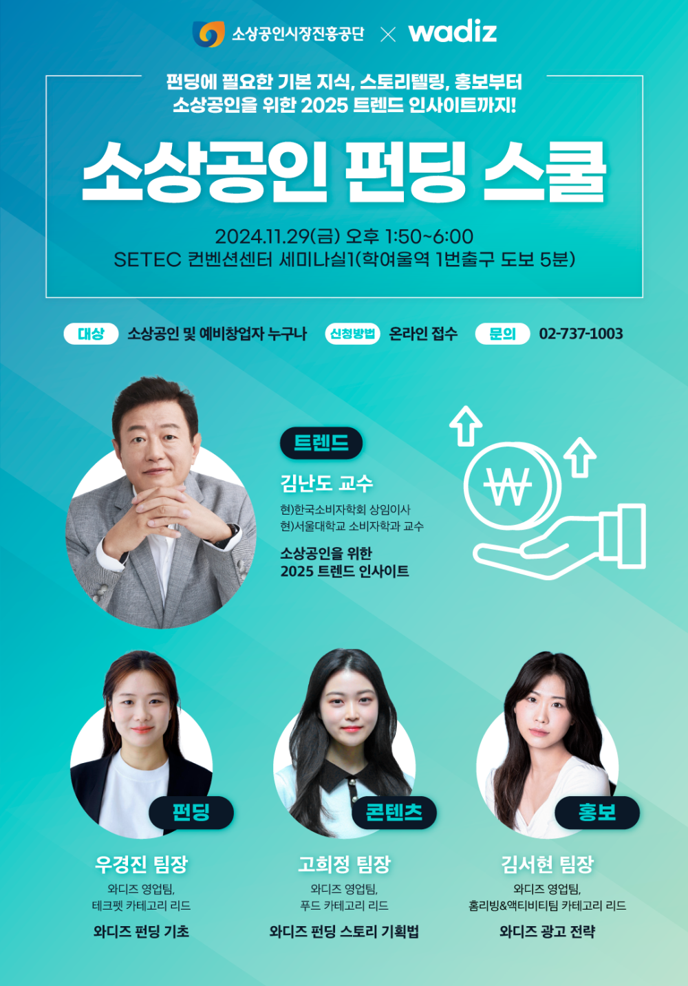 지금 바로 신청해서 와디즈 펀딩 노하우 & 2025 트렌드도 발빠르게 파악해 보세요.