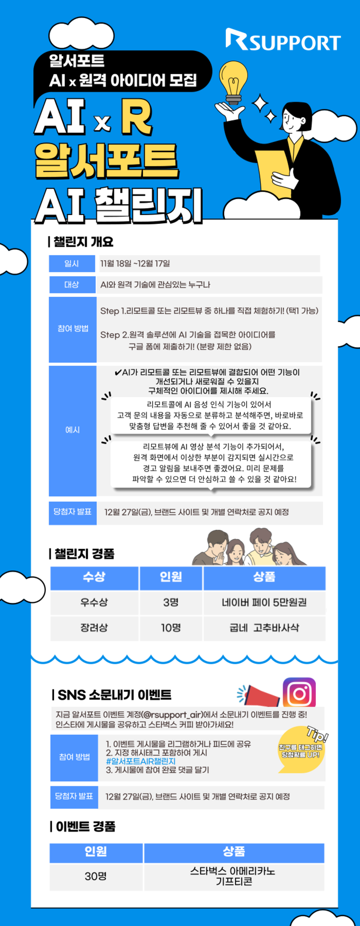 당첨자 발표는 공정한 심사 후 진행되며, 발표는 개별 연락 및 알서포트 브랜드 사이트에 공지됩니다.