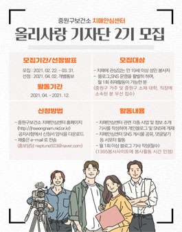 중원구보건소 치매안심센터에서 올리사랑기자단 2기를 모집합니다.