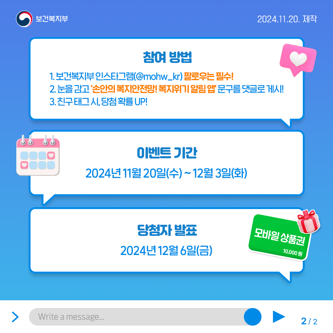 ※본 이벤트는 보건복지부 인스타그램에서 진행되는 이벤트입니다.