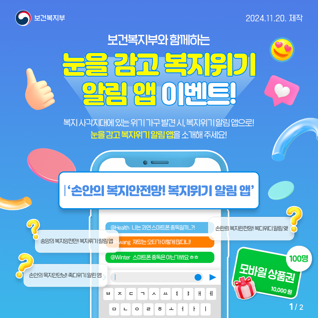 눈을 꼭! 감고, '손안의 복지안전망! 복지위기 알림 앱'을 소개해 주세요!