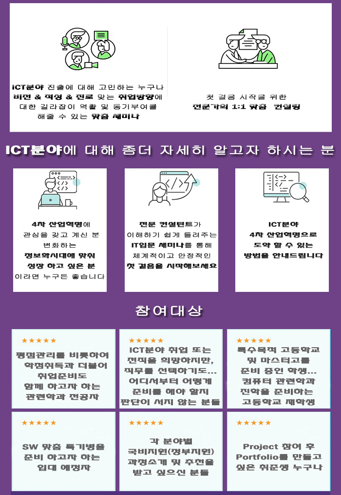 - 일정 : 2024년 11월 30일 까지 => 참가 희망자(날짜, 시간 지정) 개인 일정에 맞춰 1:1 맞춤 컨설팅 진행